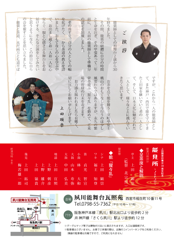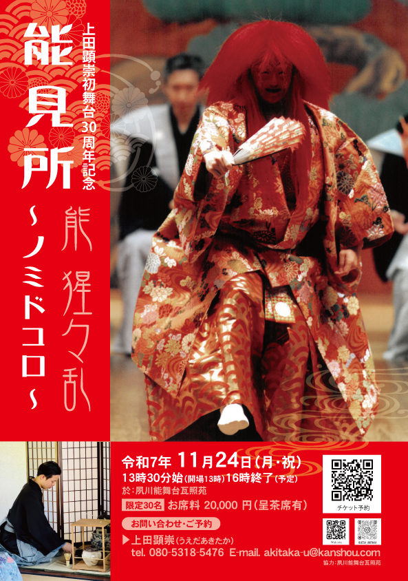 令和 7 年 11 月 24 日(月・祝)13時30分始 16時終了予定於:夙川能舞台瓦照苑